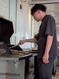真剣なまなざしでお肉を焼かれていますね、、!