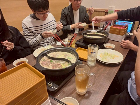 お野菜はセルフだったので、お肉ばかりにならないように皆さんのお鍋に野菜を入れるよう気配る係を担当していましたw